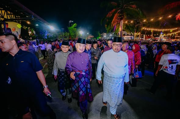 TYT Tun Seri Setia Dr. Haji Mohd Ali bin Mohd Rustam, Yang di-Pertua Negeri Melaka dan YABhg. Toh Puan Datuk Wira (Dr.) Hajah Asmah binti Ab Rahman hadir ke Majlis Rumah Terbuka Hari Raya Aidilfitri YAB Datuk Seri Utama Ab Rauf bin Yusoh, Ketua Menteri Melaka di Masjid Tanah, Melaka.