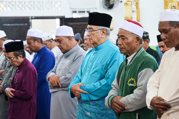TYT Tun Seri Setia Dr. Haji Mohd Ali Bin Mohd Rustam, Yang di-Pertua Negeri Melaka menunaikan Solat Jumaat di Masjid Al Aminin, Batang Tiga, Klebang dan menyampaikan sumbangan kepada pegawai syarak serta warga emas.
